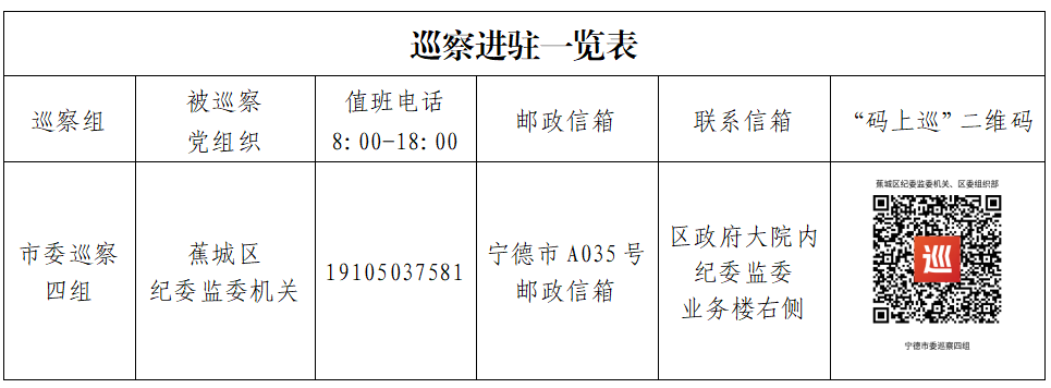 巡察时间30天左右,期间设立专门值班电话、邮政信箱和“码上巡”二维码。主要受理被巡察党组织领导班子及其成员、下一级主要负责人和重要岗位领导干部问题的来信来访,重点是关于违反政治纪律、组织纪律、廉洁纪律、群众纪律、工作纪律和生活纪律等方面的举报和反映。其他不属于巡察受理范围的信访问题,将按规定有关部门认真处理。巡察组受理信访截至2025年12月17日。